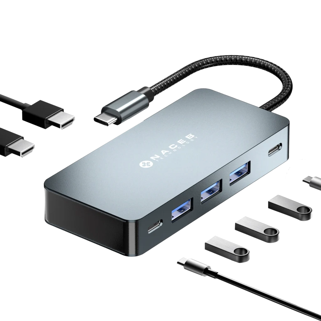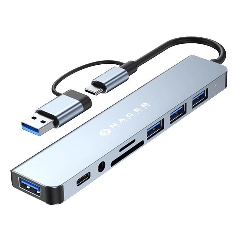 HUB de aluminio con 8 puertos esenciales que acelera tu espacio de trabajo y conecta todo en un solo movimiento.
