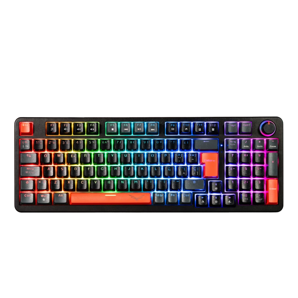 Teclado 95% que combina potencia y comodidad: switches HUANO rojos, perilla multimedia y RGB para trabajar y jugar con estilo