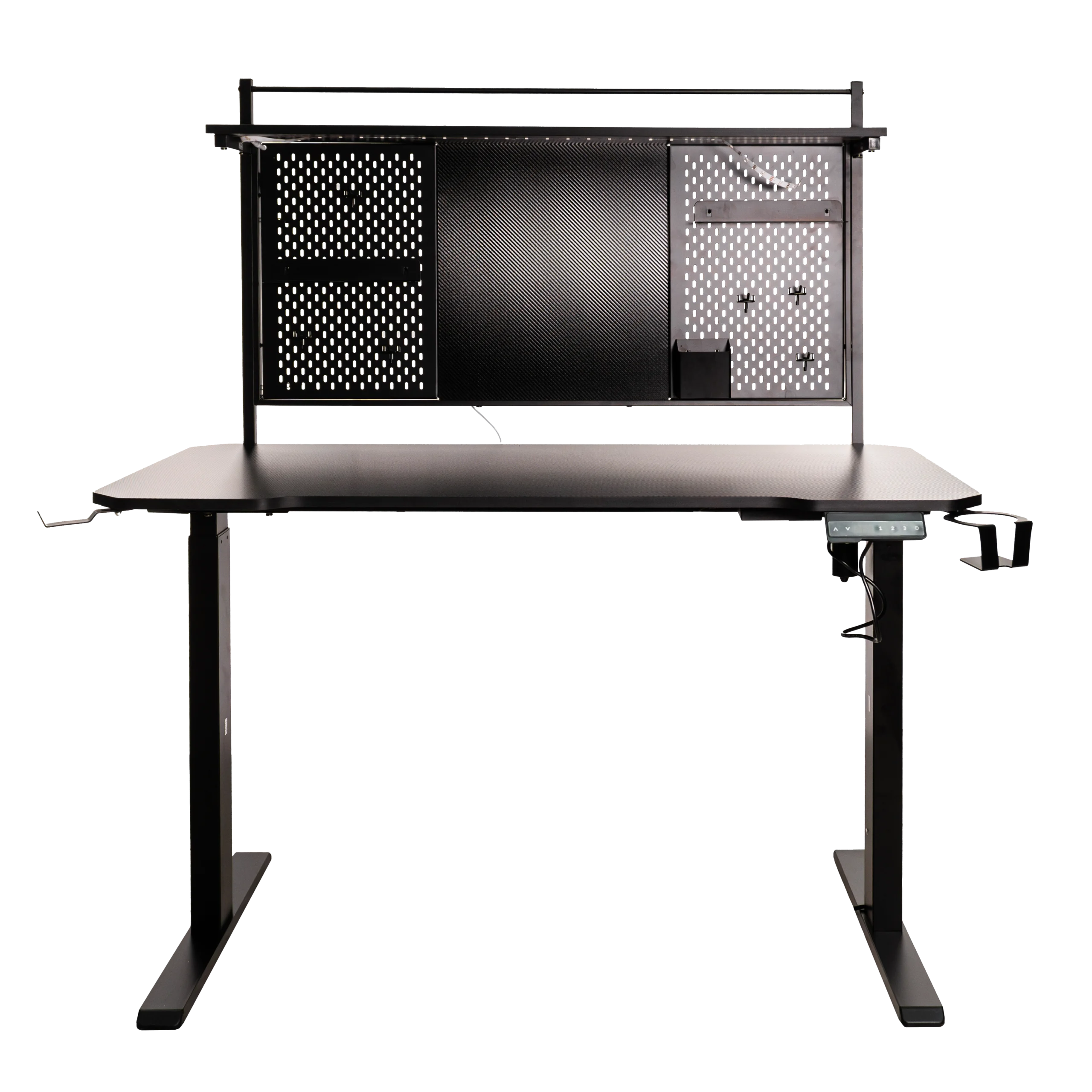 Escritorio gamer eléctrico negro de fibra de carbono con LED,