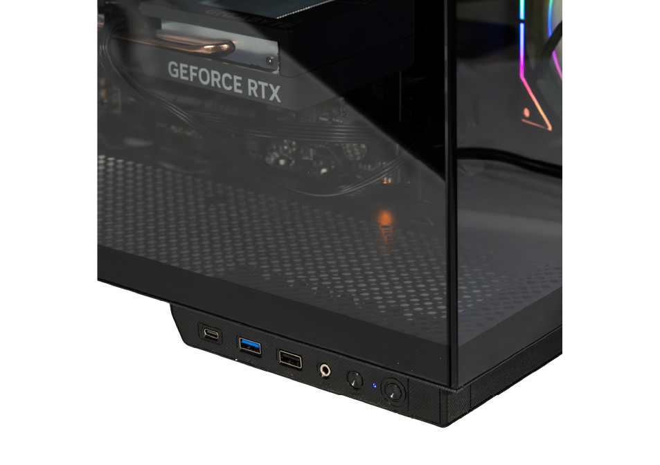 Su panel lateral y frontal de cristal templado tipo espejo te ofrece un estilo elegante a tu setup