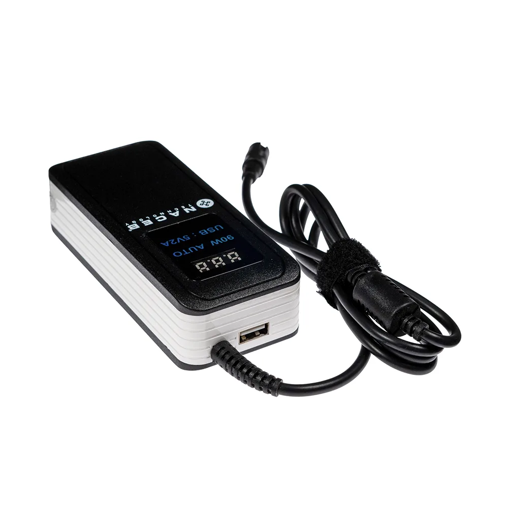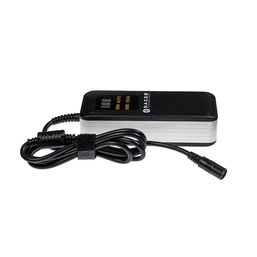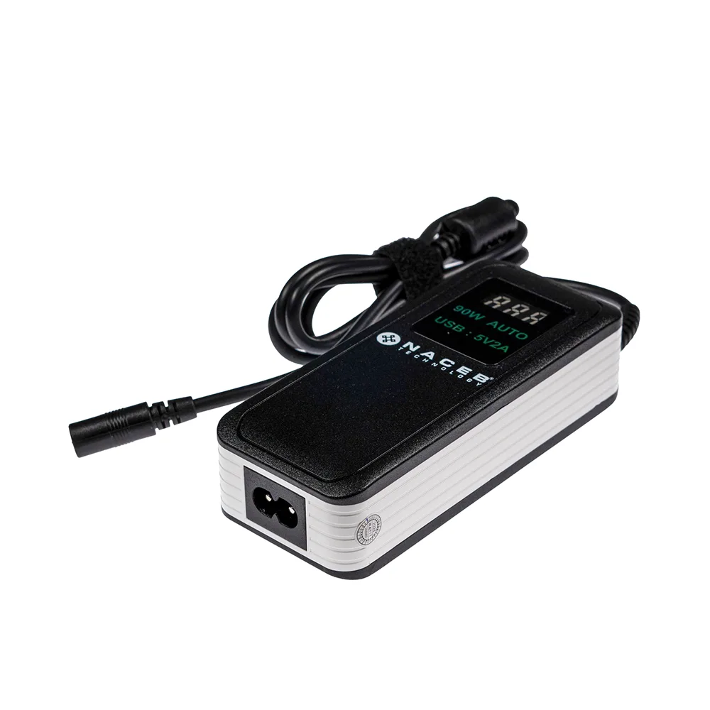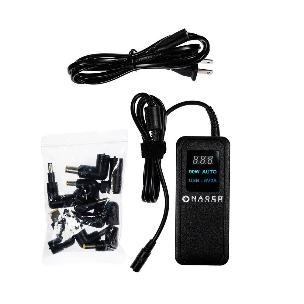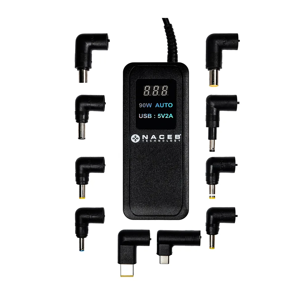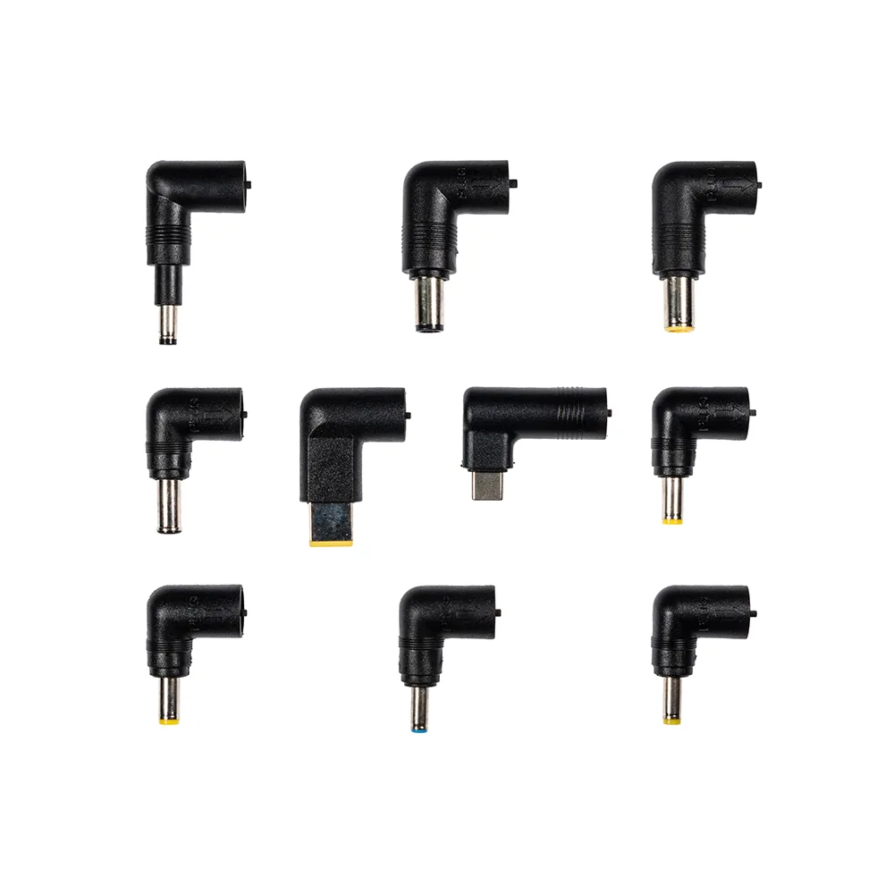 Este adaptador viene equipado con un conector desmontable compuesto por nueve puntas, lo cual permite su uso en diferentes modelos y marcas de laptops.