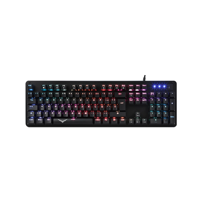 Un teclado 100% de membrana para quienes buscan comodidad, silencio y un diseño completo. La iluminación RGB le da vida al escritorio, mientras que su construcción de tamaño completo mantiene todas las teclas que necesitas para trabajar, estudiar o jugar con fluidez. Confiable, suave y práctico: el compañero ideal para el día a día.