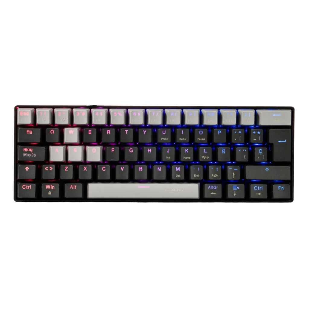 Lleva tu juego y productividad a otro nivel con un teclado mecánico compacto de formato 60% que maximiza tu espacio y ofrece movilidad sin perder prestaciones. Con 62 teclas mecánicas de switches Red, disfrutarás de pulsaciones rápidas, lineales y silenciosas, perfectas para jugadores que buscan velocidad y respuesta inmediata.