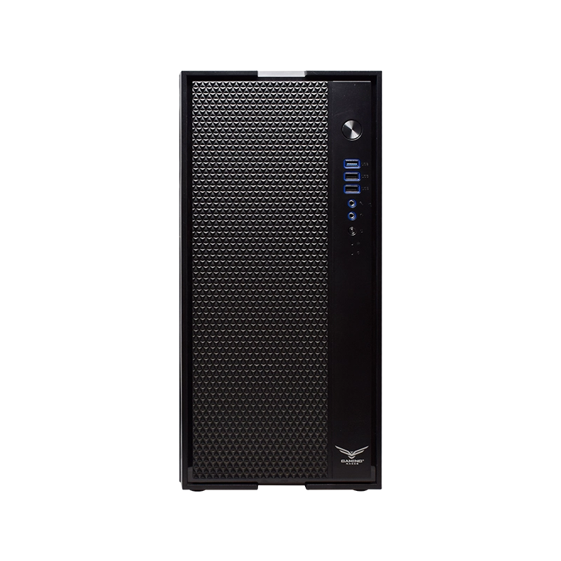 Gabinete ATX compacto con paneles de cristal templado, 3 ventiladores ARGB incluidos. Incluye USB 3.0, Tipo C y espacio para hasta 3 unidades de almacenamiento.