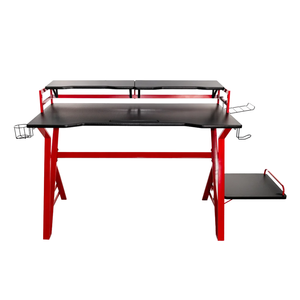 Cuenta con un elegante diseño de fibra de carbono y una robusta construcción de acero que lo convierte en un mueble duradero y estable con base lateral para tu gabinete.