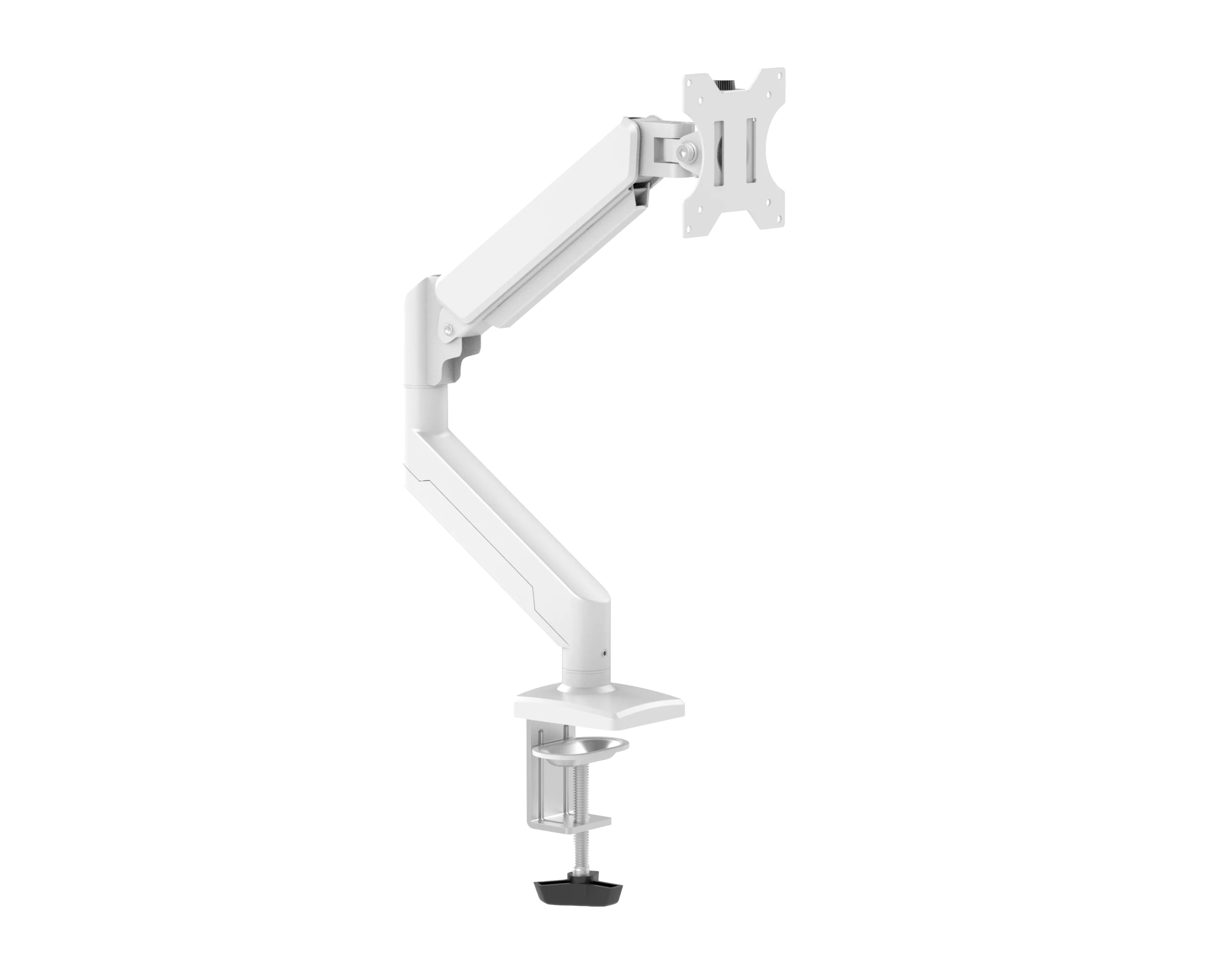 Soporte articulado negro de aluminio y acero, brazo de 45 cm, pasacables y compatible con monitores de 10” a 32”.