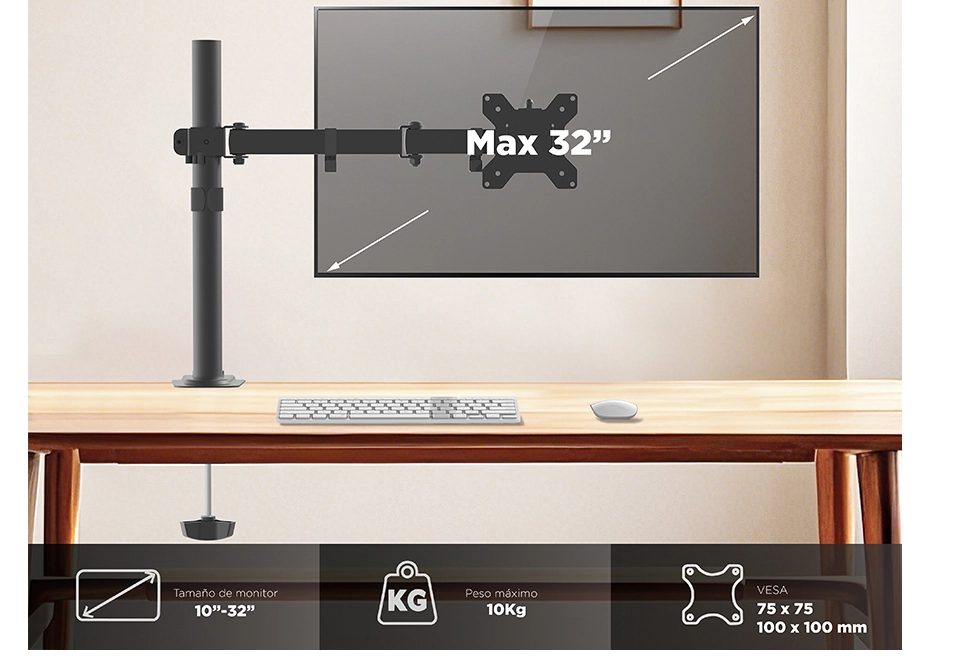 Compatibilidad de monitor: 10″ – 32″pulgadas