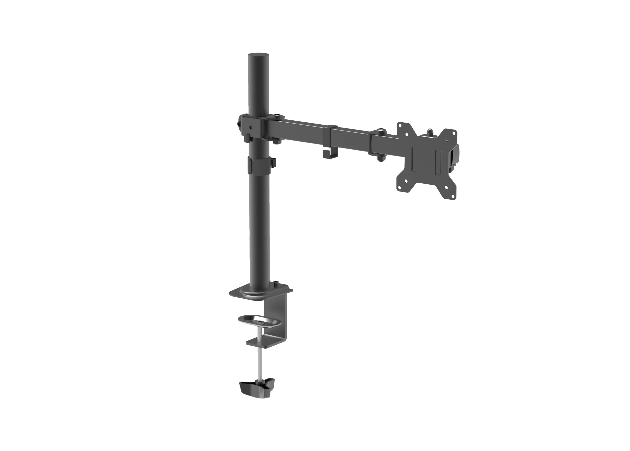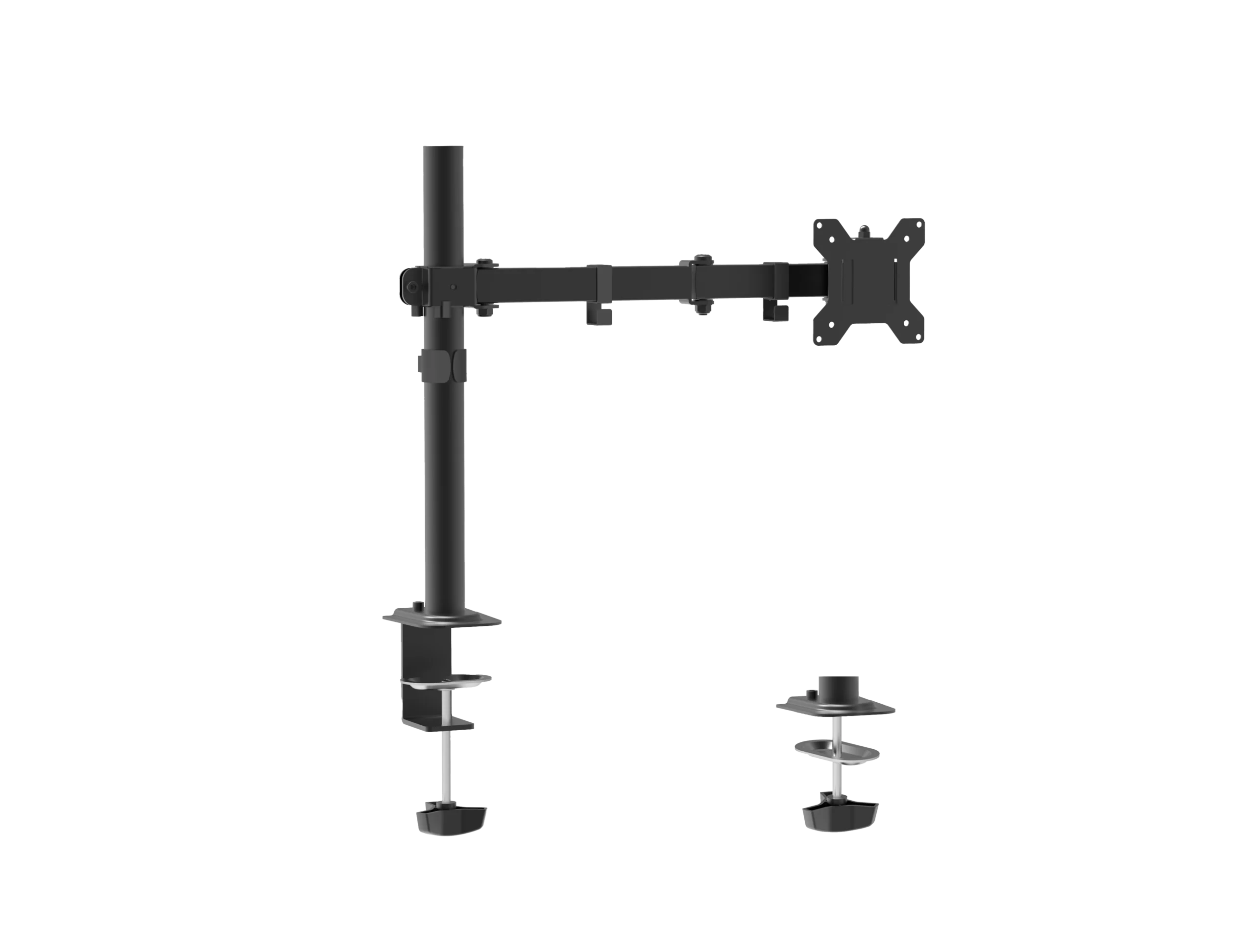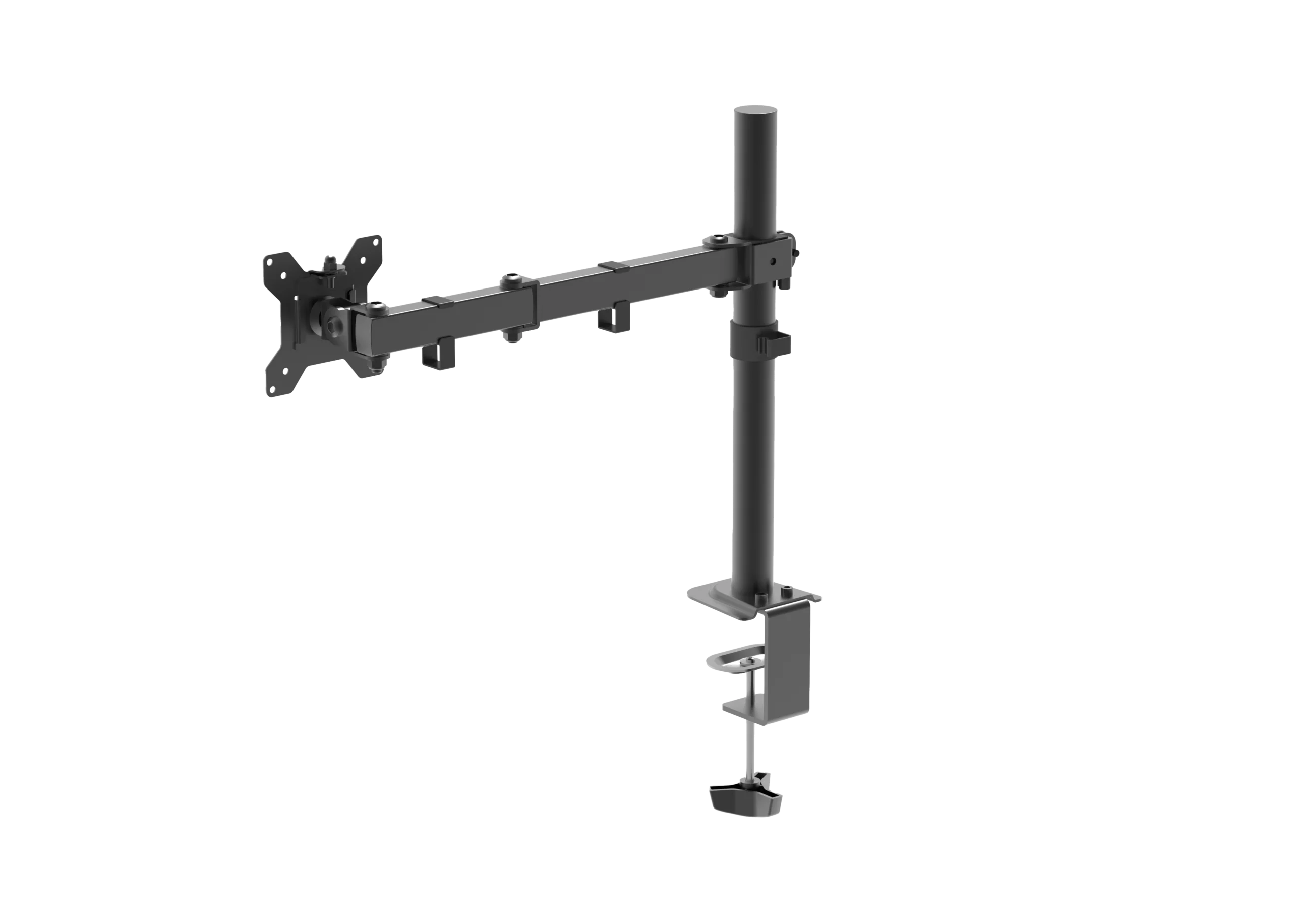 Soporte de acero laminado en frío con abrazadera, pasacables y brazo de 45 cm, compatible con monitores de 10” a 32”